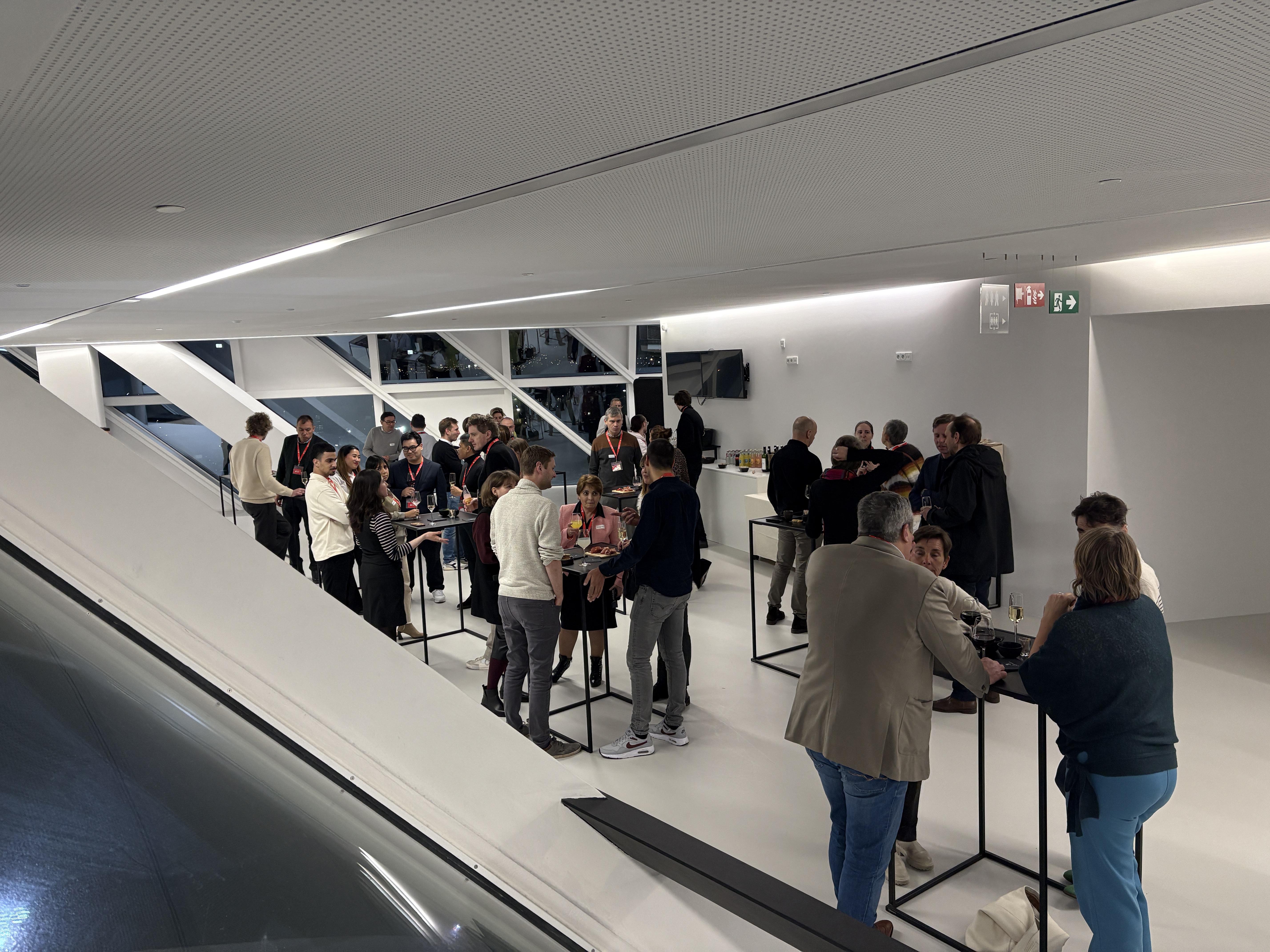 Onze gasten konden genieten van een uitzonderlijk zicht over Antwerpen en haar haven, kregen een interessante rondleiding met stevige weetjes over het gebouw, en heerlijke hapjes!